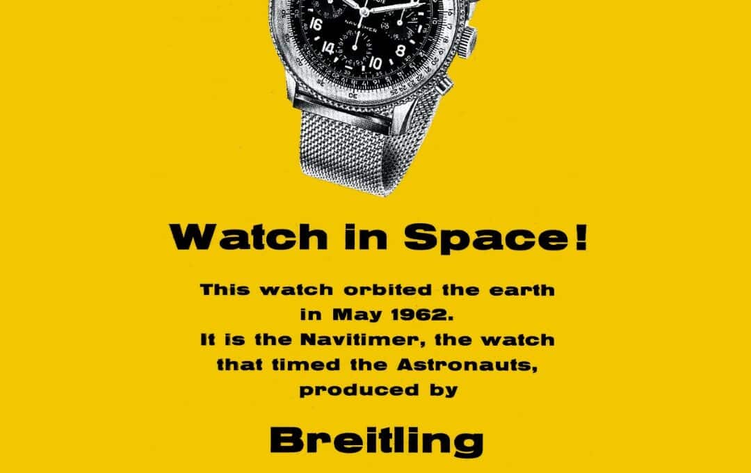 1962 wandte sich Scott Carpenter, Astronaut des Raumflugs Mercury Seven, mit einer einzigartigen Bitte an Breitling: das Design der Navitimer so umzugestalten, dass sie für die Raumfahrt geeignet war. In Bewunderung ihrer rechnerischen Fähigkeiten bat Carpenter um ein 24-Stunden-Zifferblatt, um im Orbit Tag und Nacht voneinander unterscheiden zu können. Breitling nahm die Herausforderung an, und die personalisierte Navitimer, später Cosmonaute genannt, begleitete Carpenter am 24. Mai 1962 auf seiner Mission, um zur ersten Schweizer Armbanduhr im Weltraum zu werden.